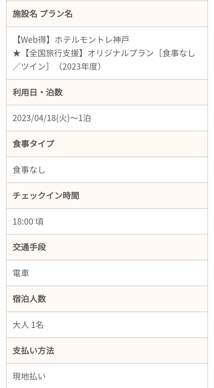今回は旅行支援が適用されたプランでしたが、ホテルの公式HPからの予約で