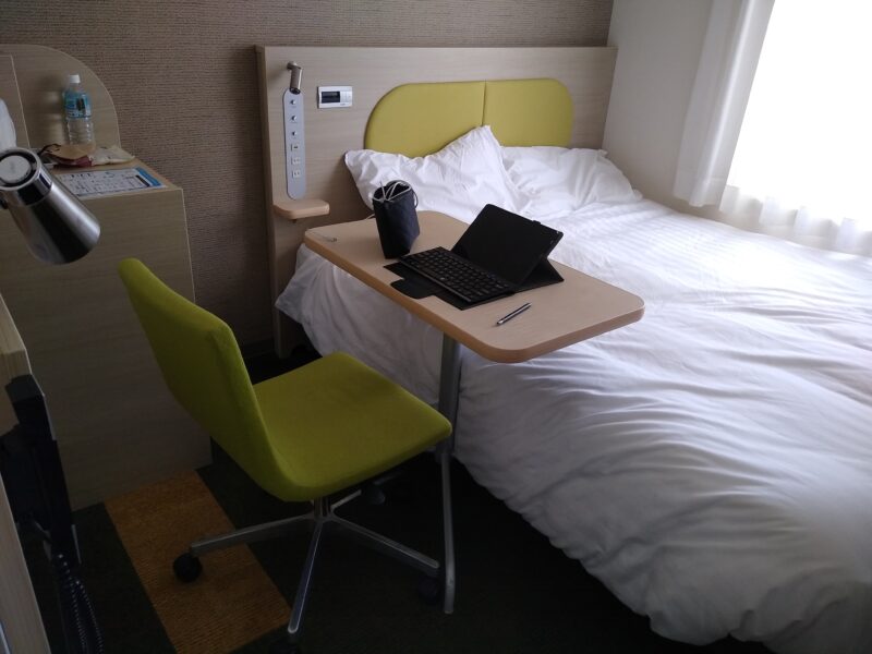 部屋には仕事に便利すぎるフレキシブルなデスクもあり、サータ社製の寝心地抜群のベッドとyou tubeなども見られるミラーリング対応テレビ