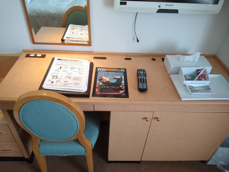 それとは別に壁際、テレビの下にデスクと椅子があるのでお仕事はこちらで👍