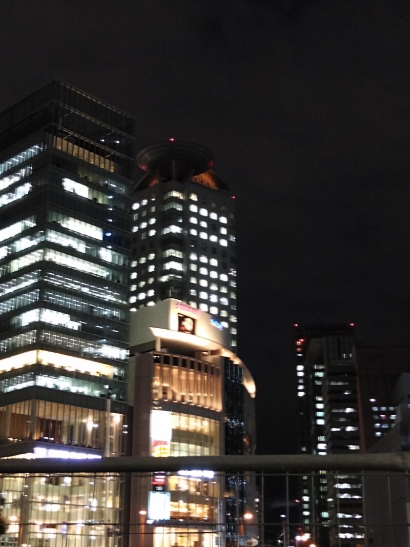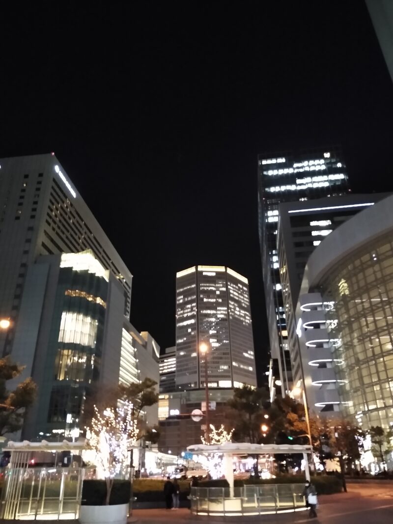 途中、ライトアップされた梅田の街中を歩くのがまた楽しい〜