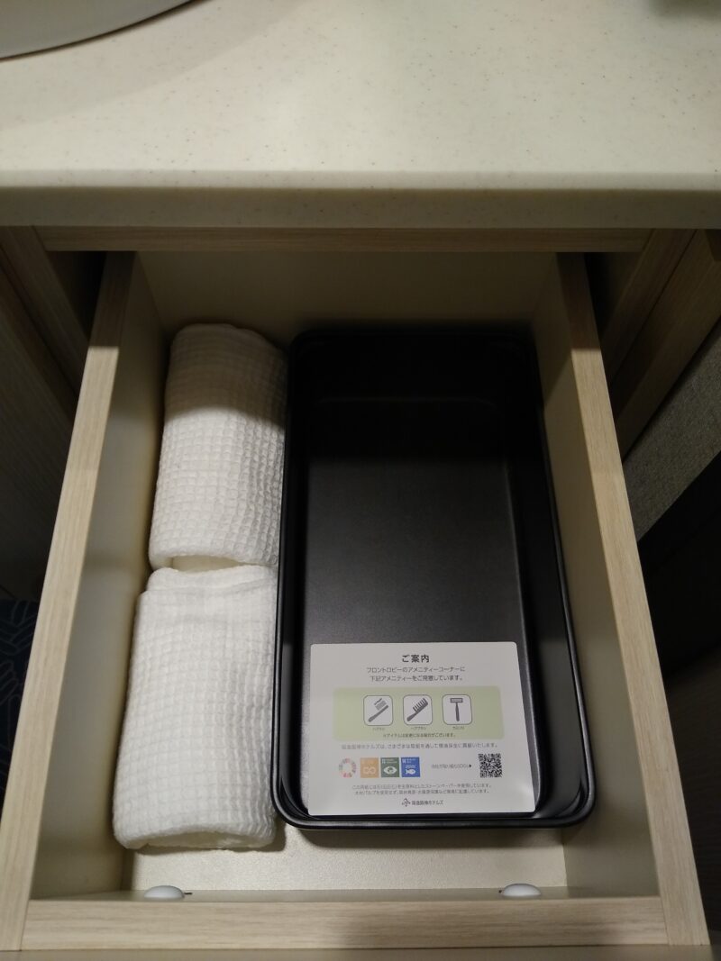 シャワーキャップやヘアゴム、基礎化粧品などはありません