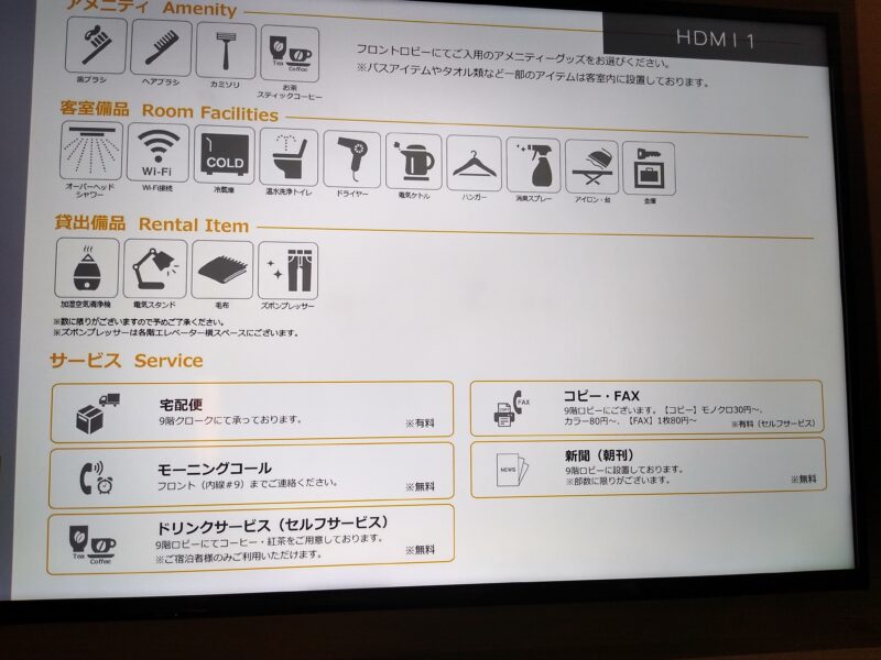 珈琲などはフロント階に無料のマシンがあるので、そちらで入れて持って上がってくるシステムの為、こちらには何もありません