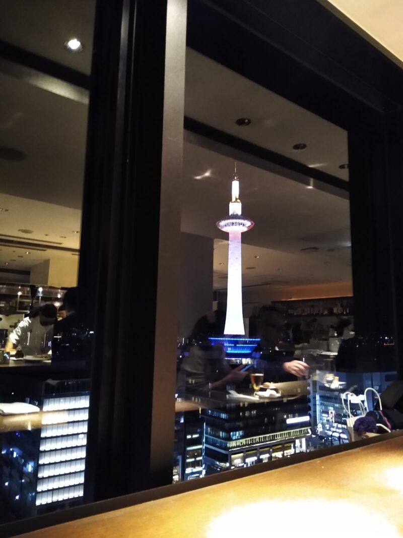 白ワインとおしゃれな何かをちょこちょこ頂き、窓の外の京都の夜景を楽しみます