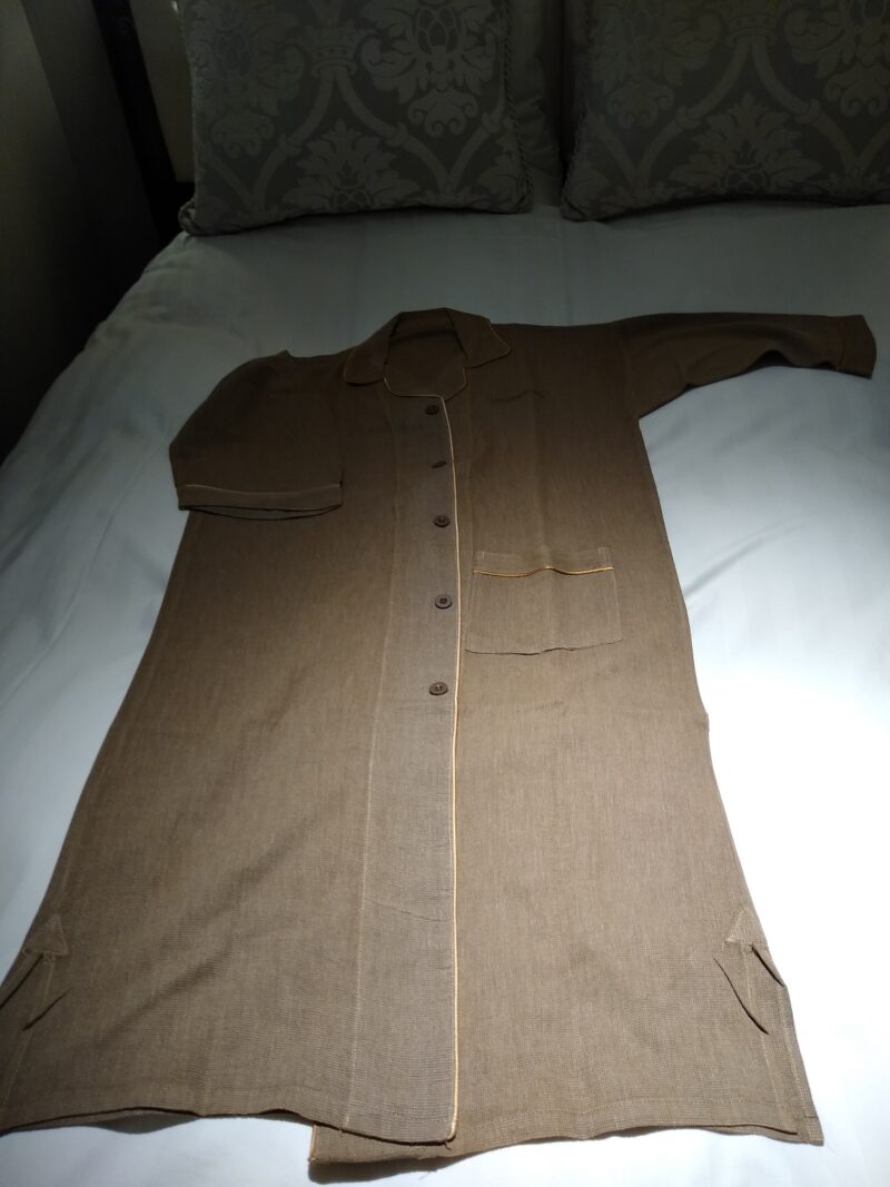 パジャマはワンピースタイプ しっかりした厚みがあるんだけど固くない👍