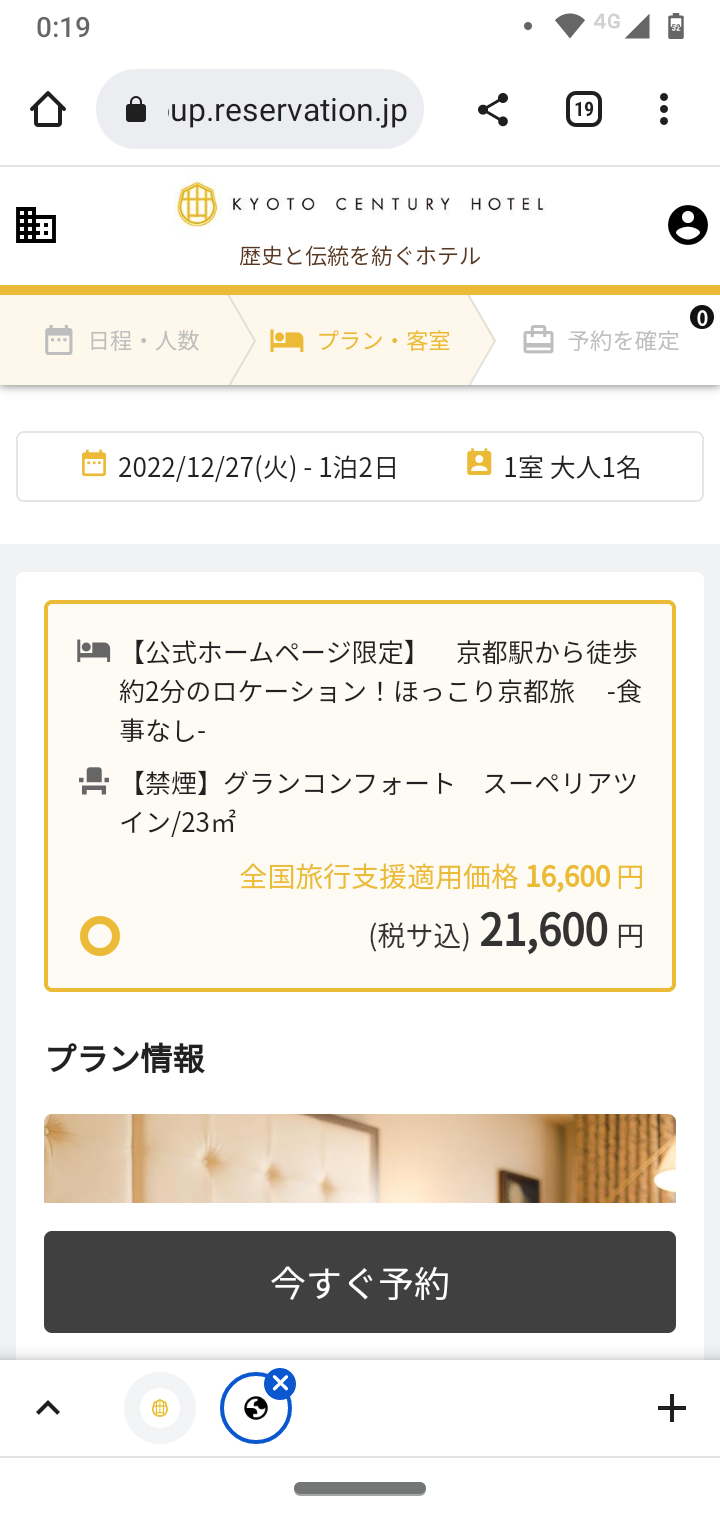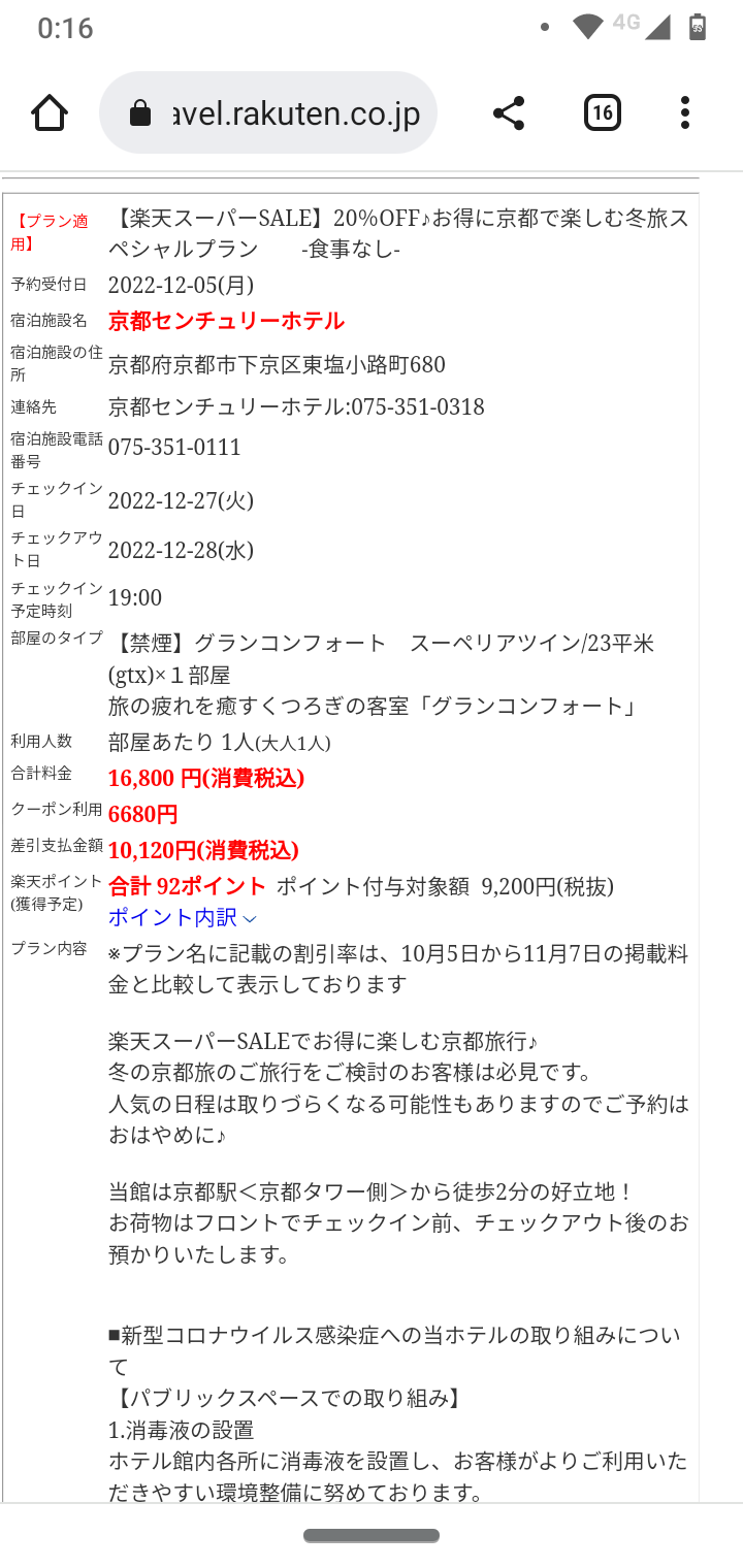 今回は楽天トラベルの全国旅行支援を利用したプランで申し込みました