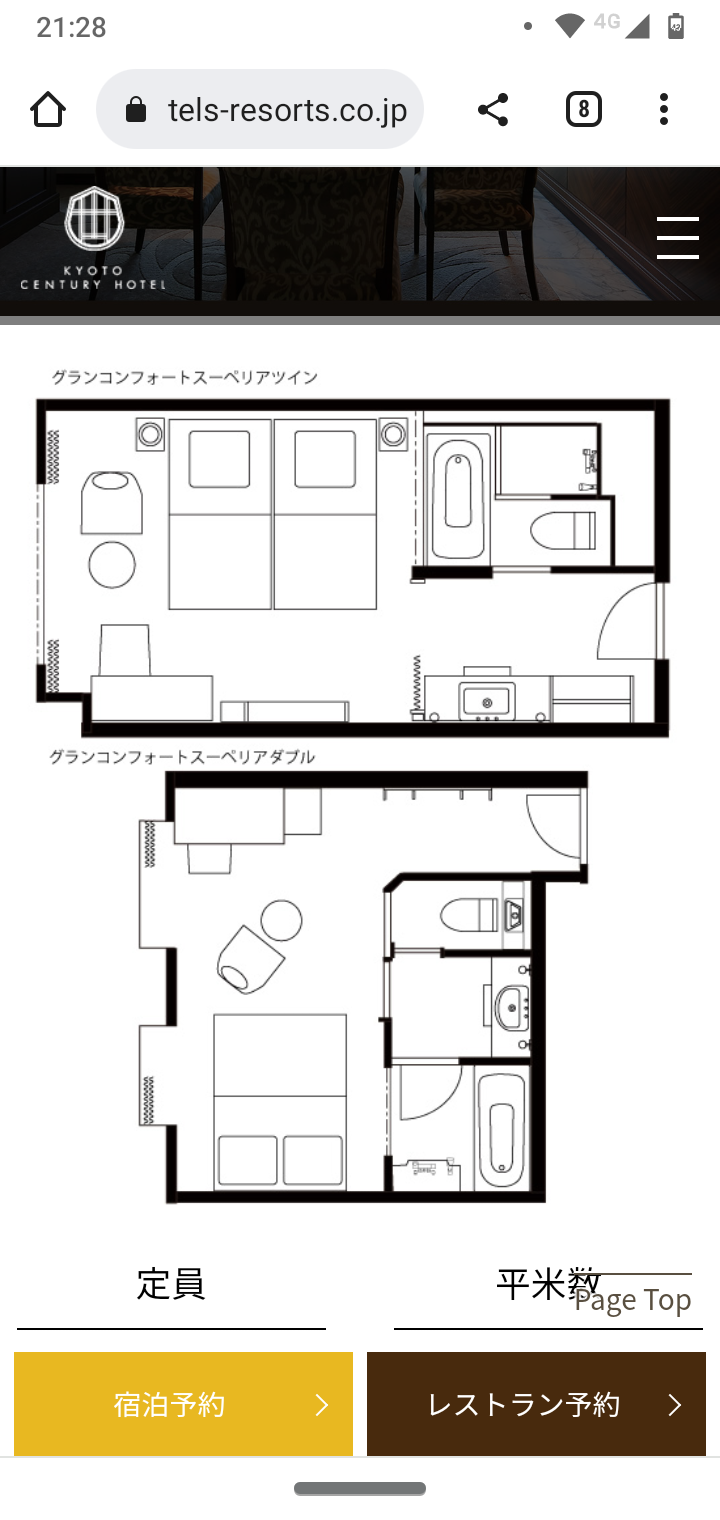 今回予約した部屋、グランコンフォートスーペリアツインは