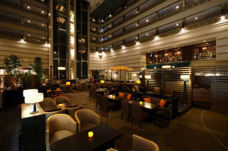 そして中央の吹き抜け部分にラウンジ&バーの「クー・オ・ミディ」があります