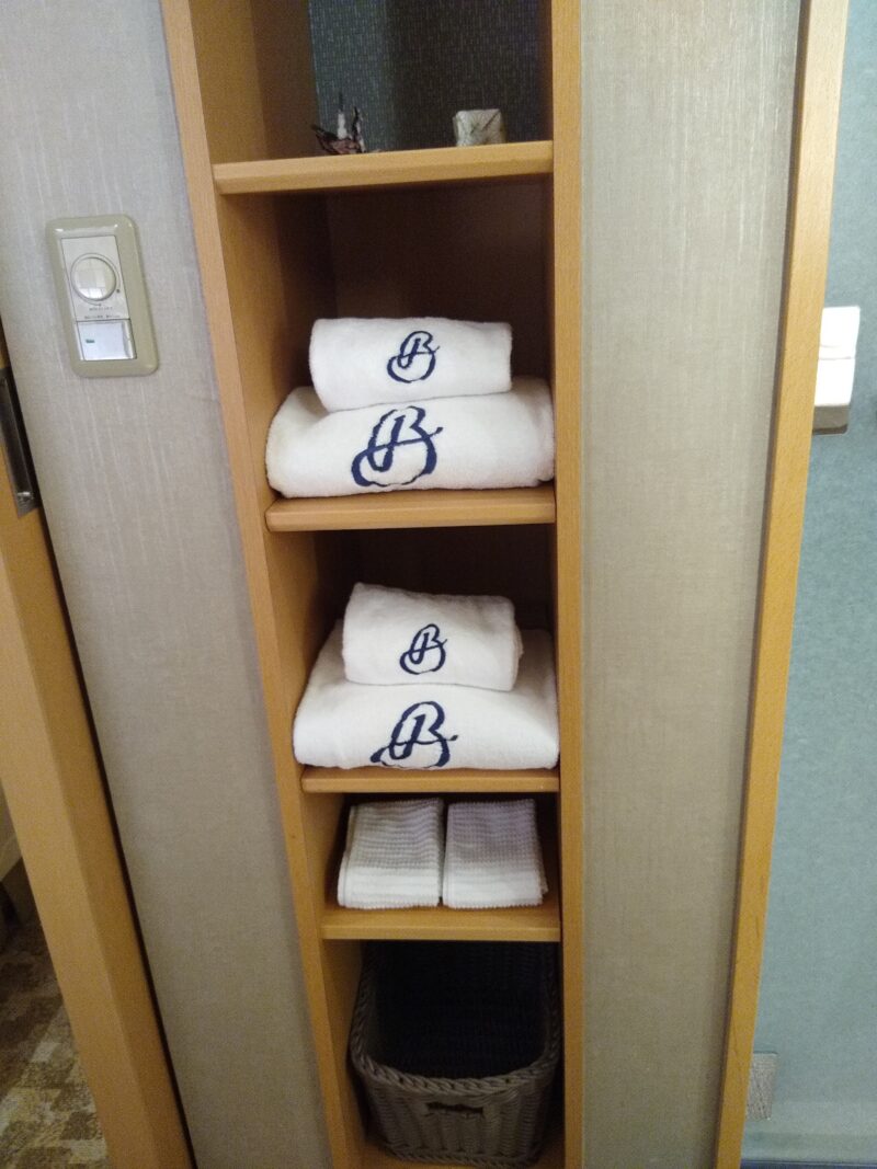 バスルームの横にはロゴマーク入りのタオルの数々…しっかり分厚いタオルでした👍