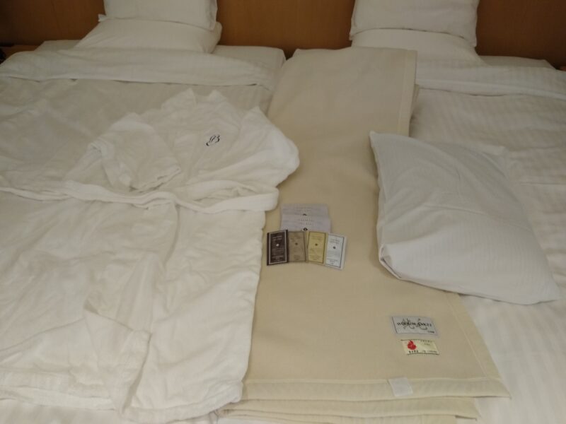 ホテルでは冷暖房を切って寝るので、冬の間は必ず毛布を借ります。ホテルによって毛布の質が全然違うのでそれを見るのも楽しい😊ここの毛布の肌触りは段違いによかった~