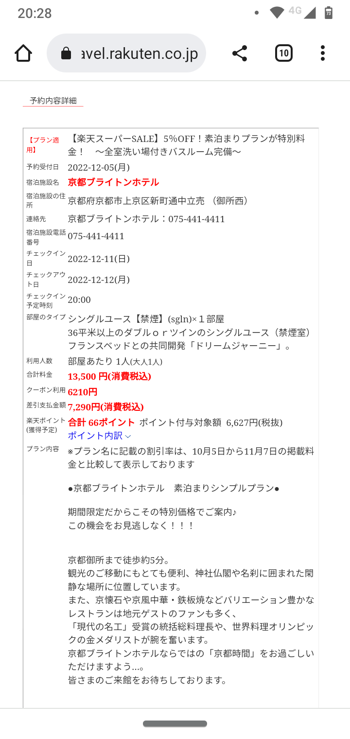 今回は楽天トラベルから全国旅行支援対象のお部屋お任せプランで申し込みました