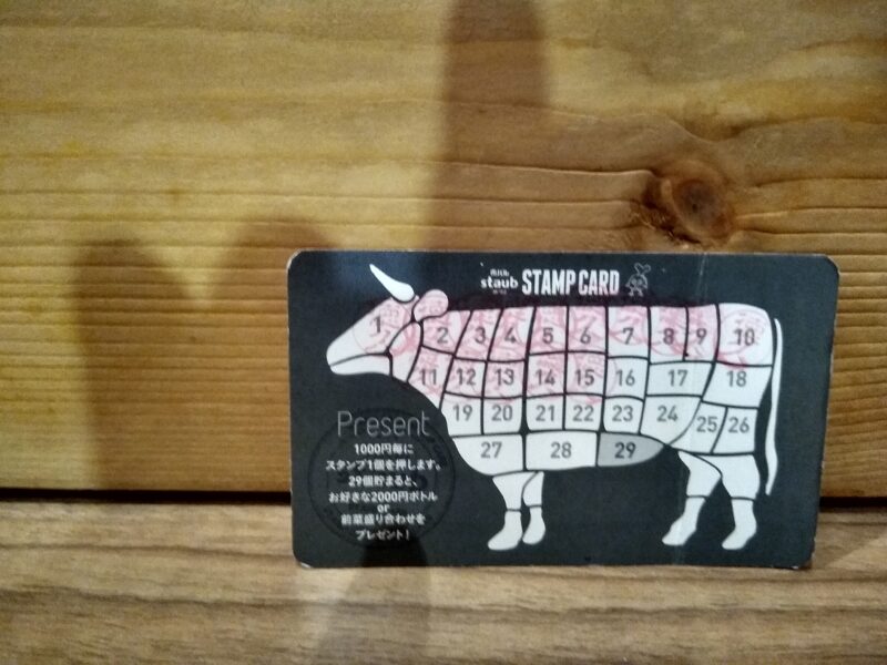 満杯のスタンプカードと引き換えられるのは2,000円のワインor前菜盛り合わせ