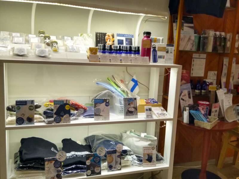 扉を開けるとフロントと、サウナ関連のいろいろグッズのショップがあります