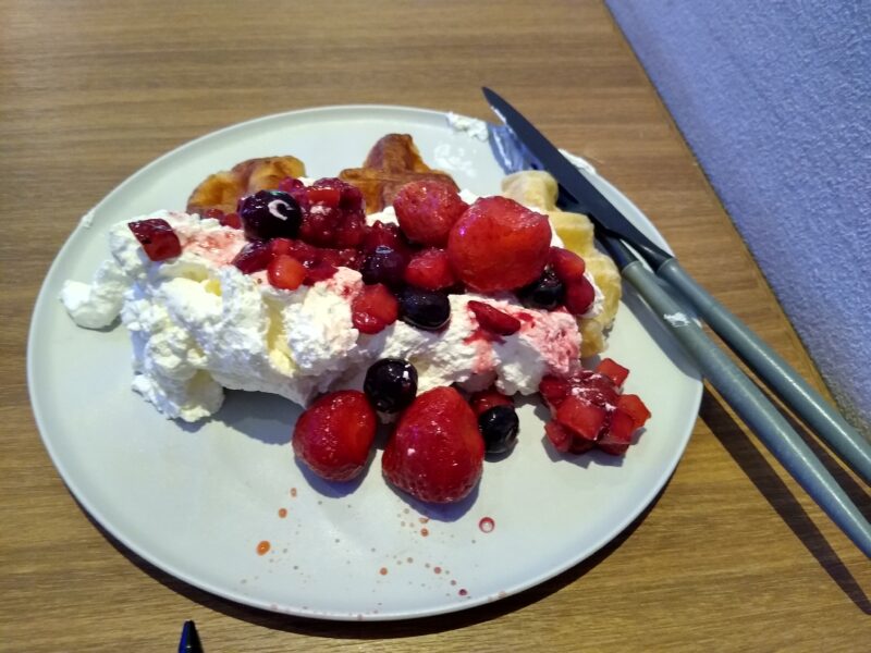 コンポートもホイップクリームも全然甘くなくて、いくらでも食べられる…