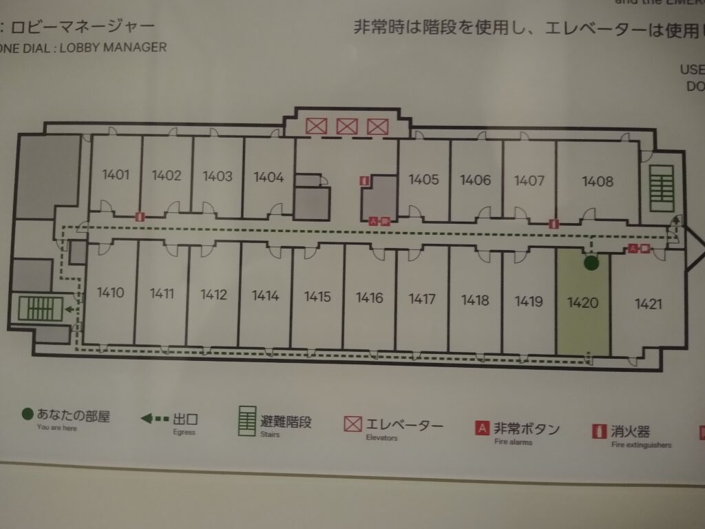 私が予約した部屋は↑の1405室あたりの広さなので、だいぶん広い部屋にアップグレードされています