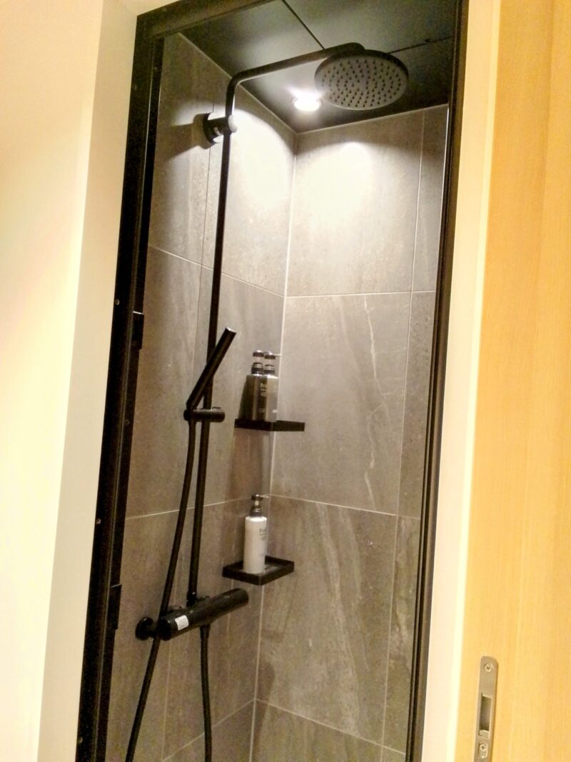 こちらのバスルームはバスタブなしのシャワーブースのみ