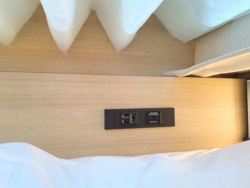 窓辺にはライトと各種電源があるので充電も楽ちん楽ちん