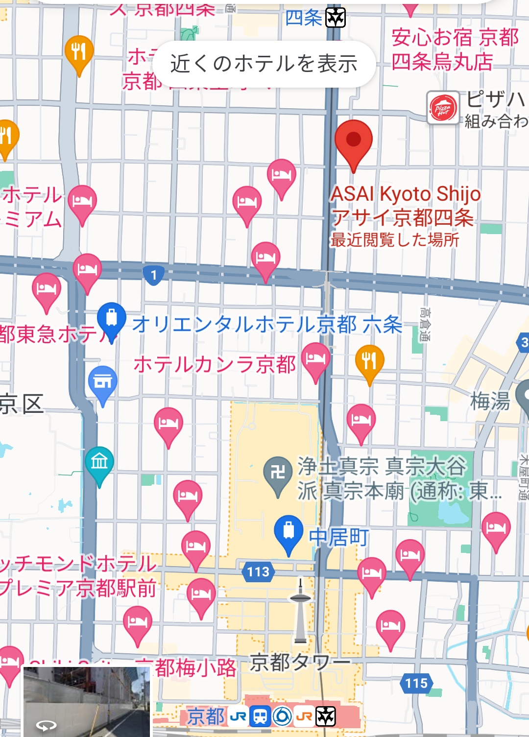 シークエンス京都五条やブラッサム京都などホテルがたくさんあるエリアにあります