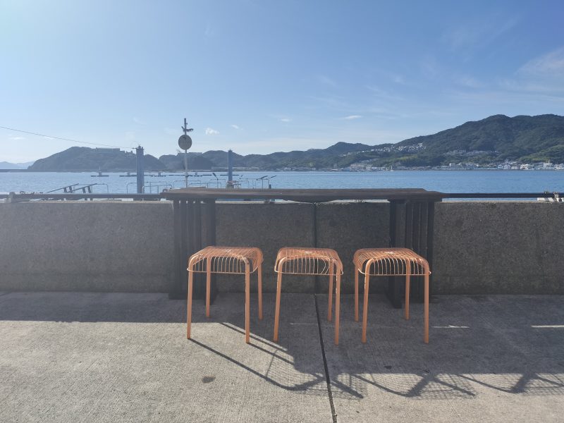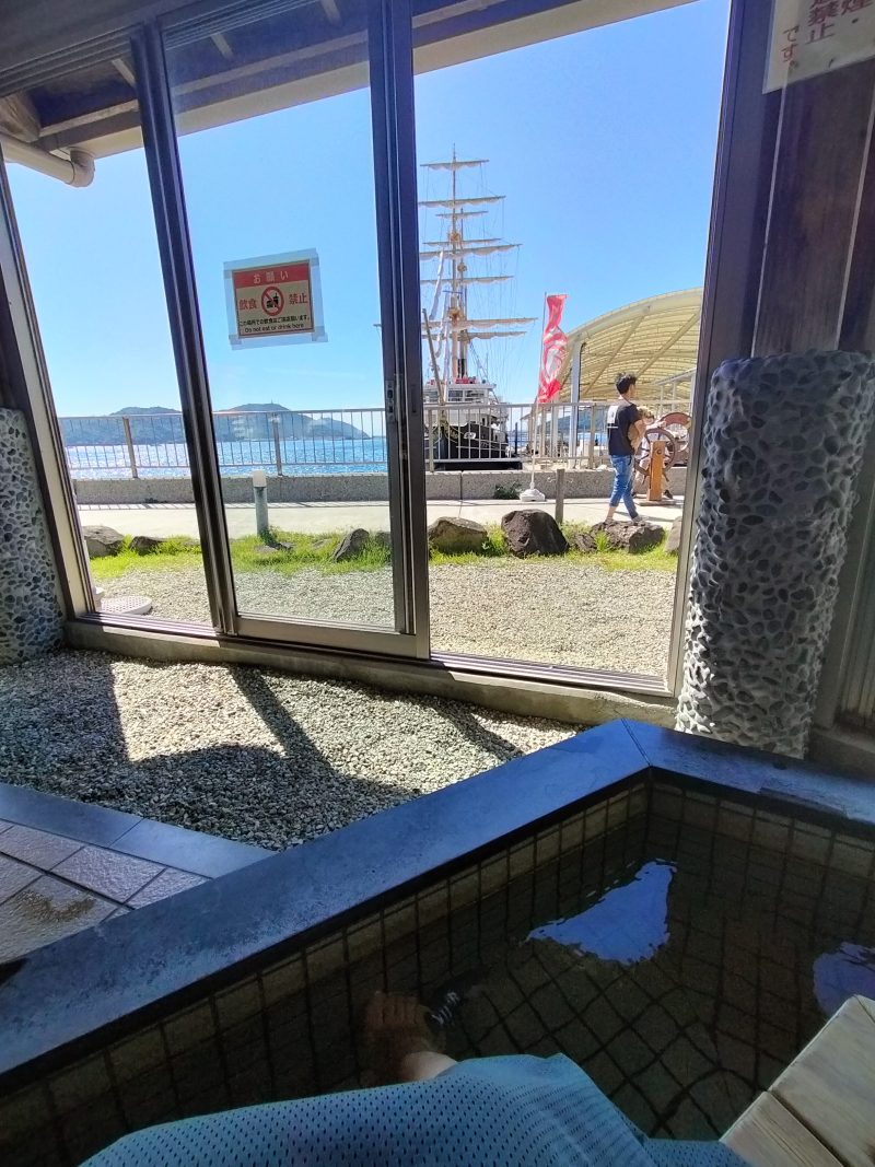 足をちゃぽちゃぽしながら海と空と船を眺めることができます✨