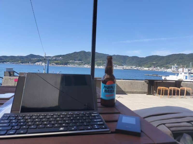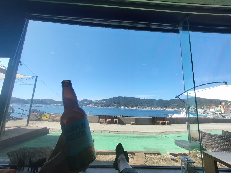バイクや自転車で淡路島を一周するアワイチの通り道がホテルの前を走っているので、高そうなロードバイクに乗ってきた人がチェックイン後にここで軽く1杯飲んで早めにお部屋に引き上げてました