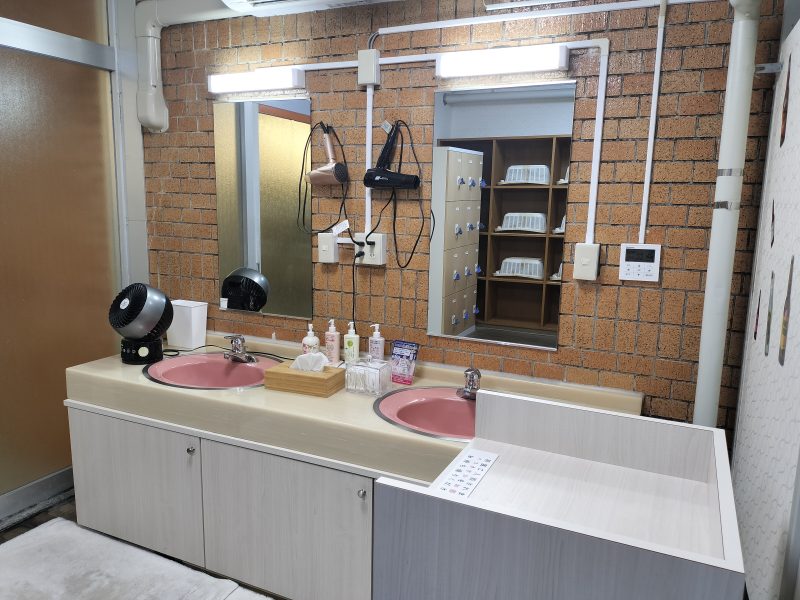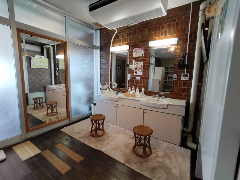 小さい方の洗い場や脱衣所にもシャンプー類やアメニティ類は同じものが置いてあるのでご安心を👍