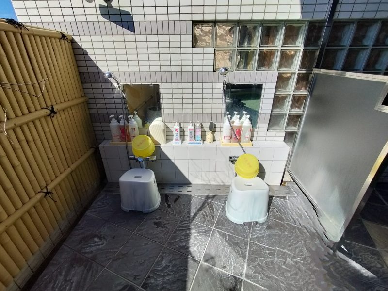 洗い場は室内に8ブース露天風呂に2ブースありますが、明るいうちは露天風呂の洗い場がおすすめ!