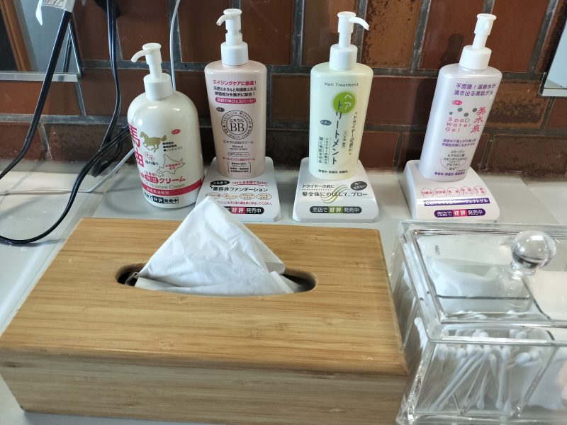 私はひとりなので、ジェルとトリートメントを塗りまくってすっぴんのまま…おかげで翌朝のお肌と髪の毛はツルッツル🥰結局朝晩に温泉に入ったので基礎化粧品は要りませんでした👍助かる〜
