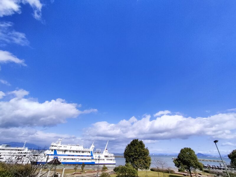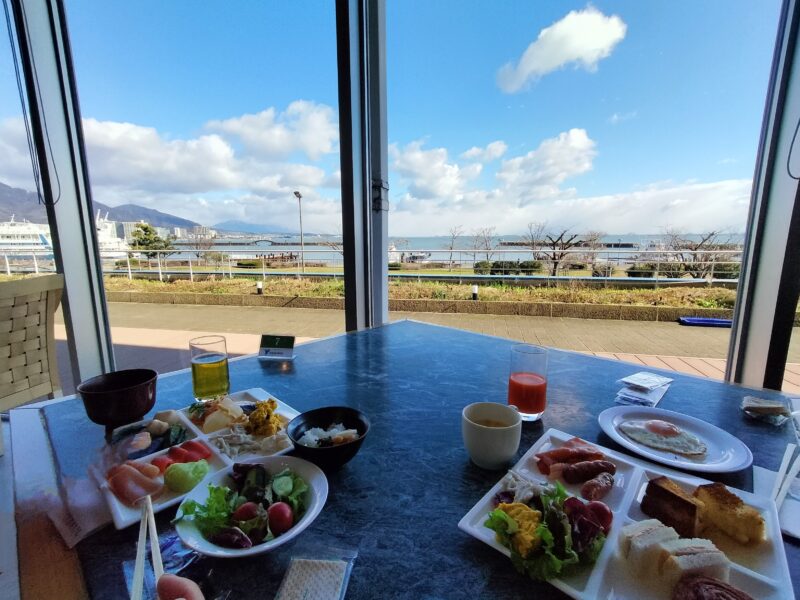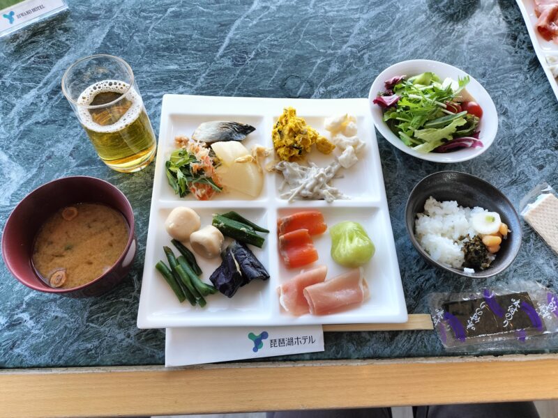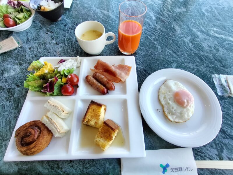 琵琶湖と広い空を眺めながら頂く朝ご飯は幸せ🥰✨