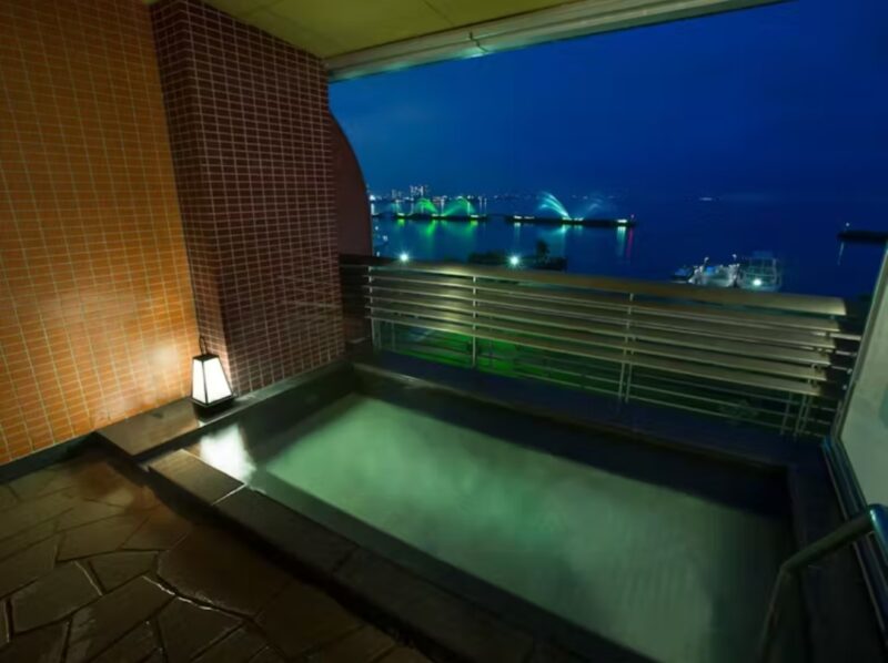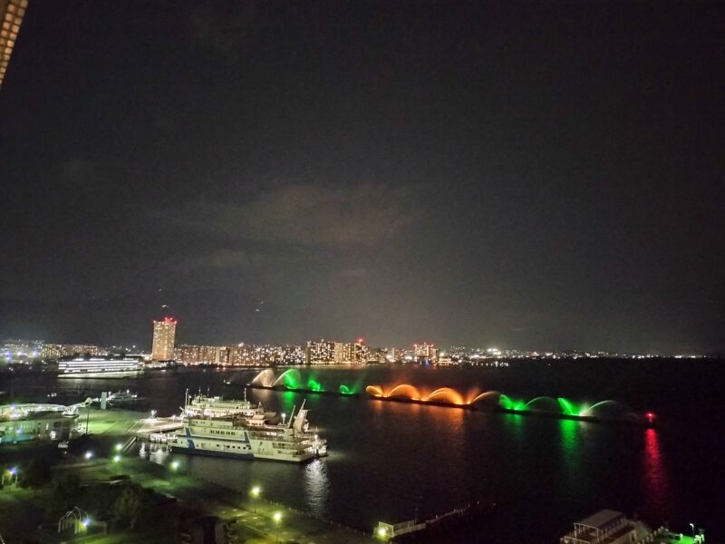 この放水ライトアップはお部屋のテラスからも見えたけど綺麗かった〜!