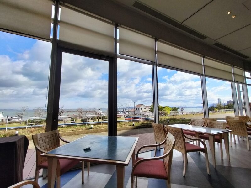 琵琶湖に面して一面窓の明るい明るい店内☺️