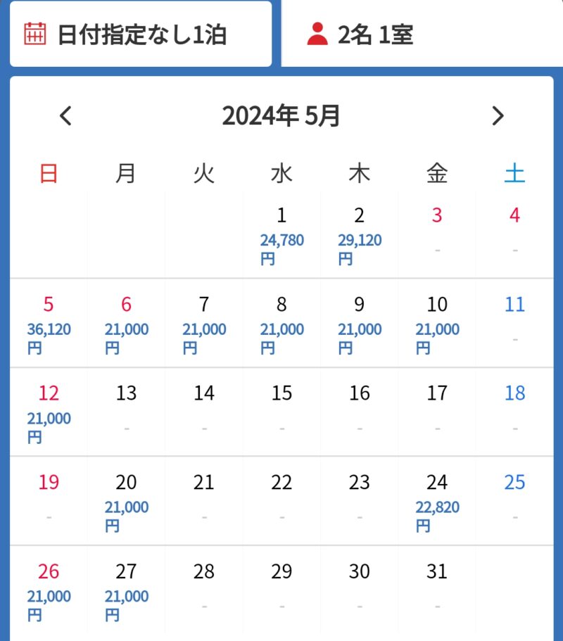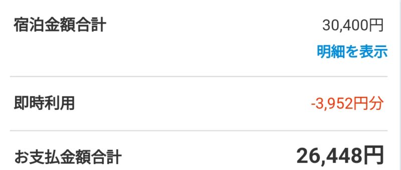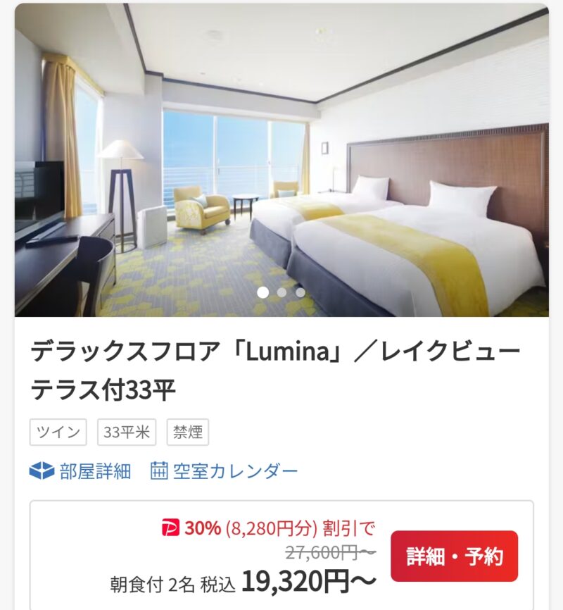宿泊料は時期やプラン、予約サイトによって金額が大きく変わりますので参考程度にご覧ください😅