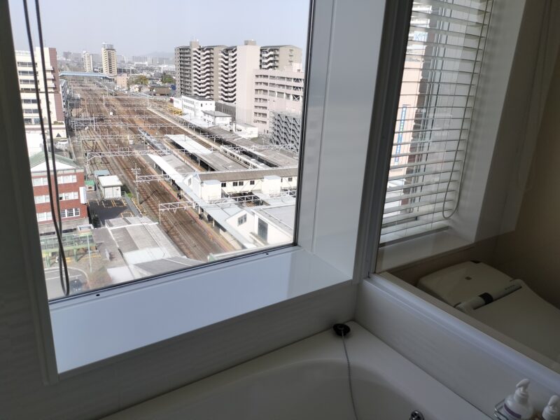 シャワーを浴びながら草津駅を見下ろせます✨丸見えだけど…