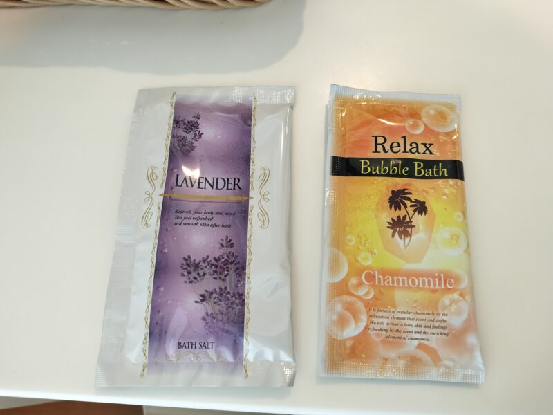このホテル、お菓子や入浴剤など嬉しいアメニティが多い🥰✨