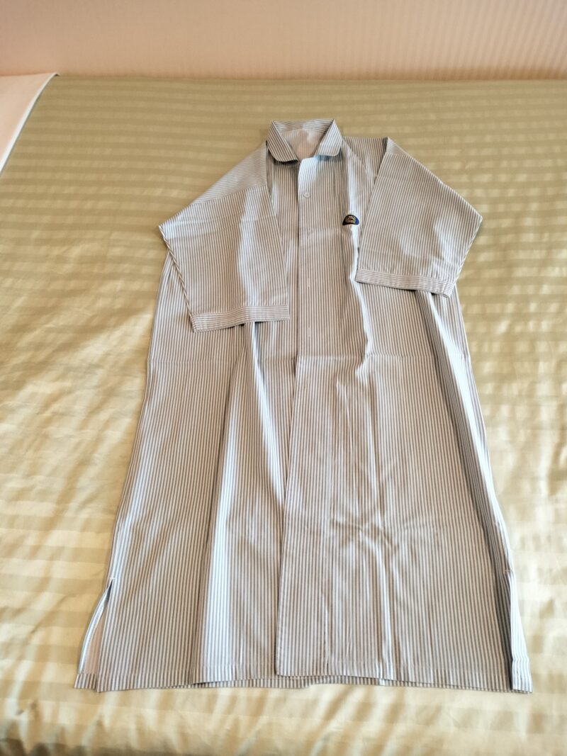 パジャマはサラリとした生地のワンピースタイプで結構大きめ☺️