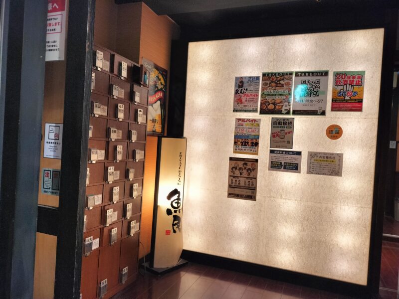 普通の魚民と同じで、入口で靴を下駄箱に入れます
