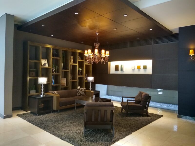 フロントの向かいにソファスペースがあります