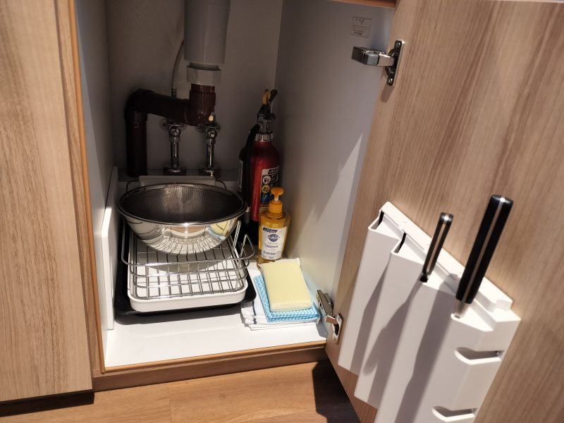 タオル類やストックのトイレットペーパーはトイレの上部にあります