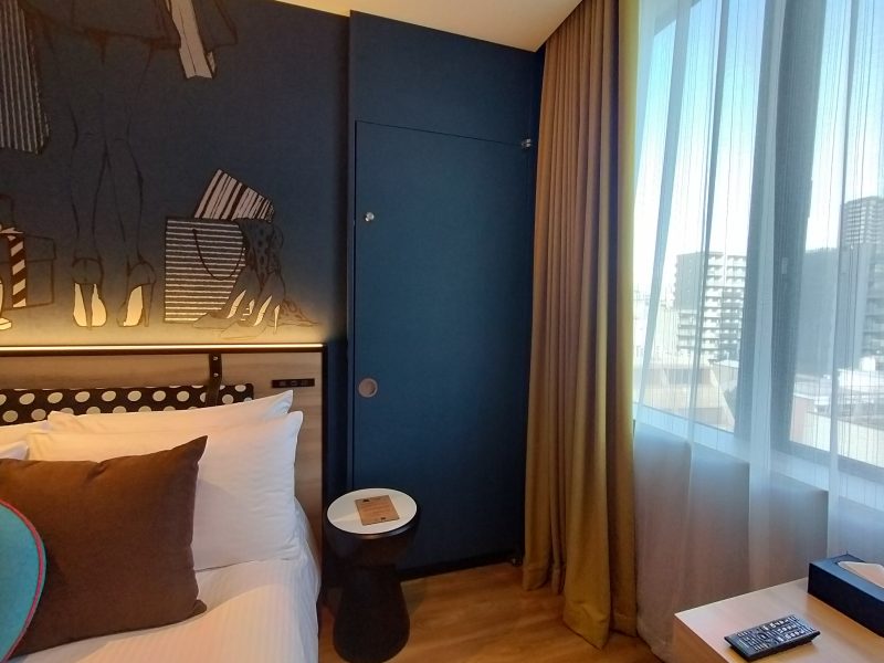 ベッドの横にコネクティングルームにもなる扉がありました(今回はちゃんと閉まっています)
