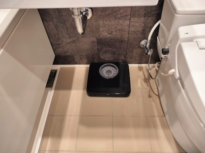ベーシンの下には体重計もあるので、よければどうぞ…