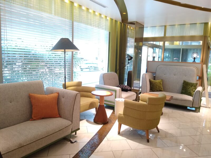 1階にあるホテルのフロントに、コワーキングスペースを利用したい旨を告げるとスペースの利用説明があります
