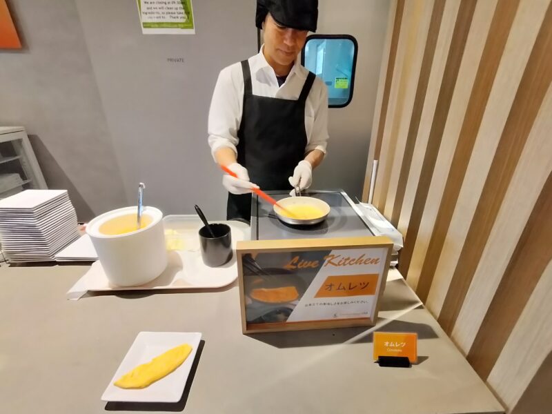 ライブキッチン的なのもあって、注文してから焼いてくれるオムレツもあります