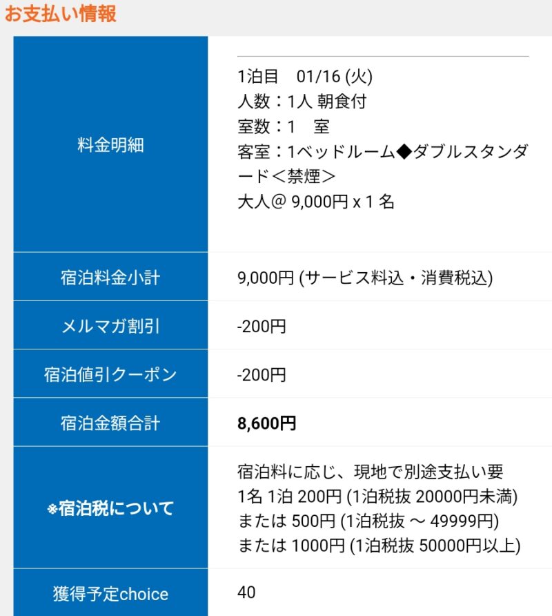 私が泊まったのはまだ旅行支援が適用された1月