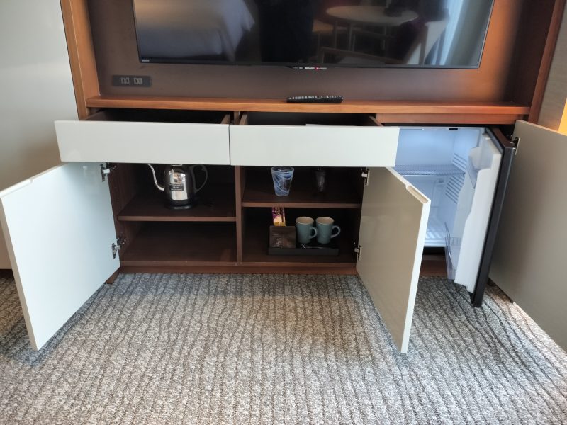 テレビの下には冷蔵庫やミニバー関連