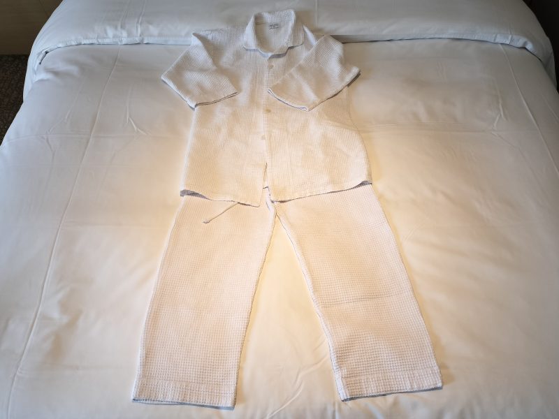 パジャマはワッフル地のセパレートタイプ