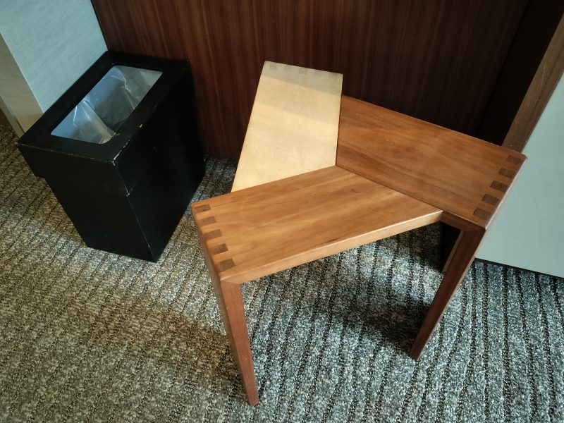 テーブルも大きくて、パソコン作業はもちろん三条商店街で買ったいろいろを並べた夕食にもとても便利でした☺️