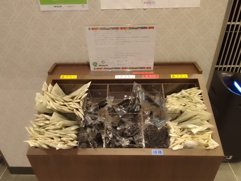 アメニティはフロント横から必要分をピックアップ
