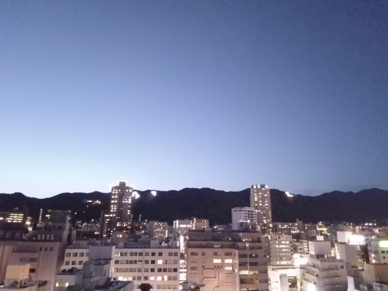 暗くなると、六甲山のシンボルマークも目の前です