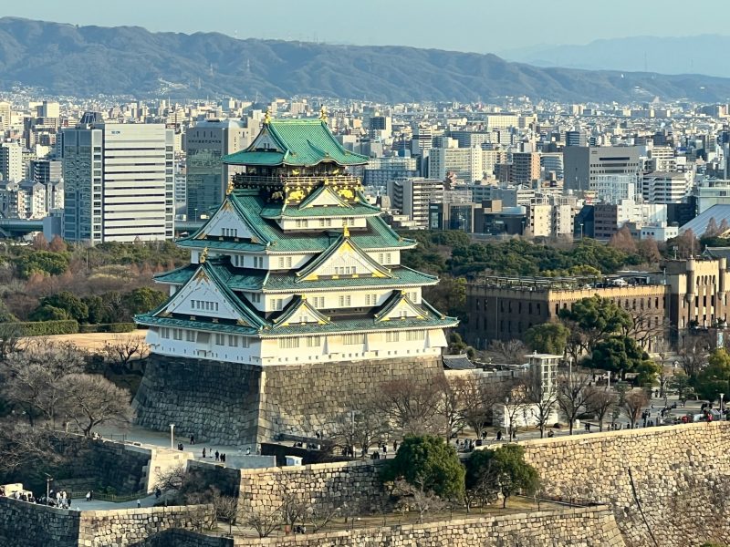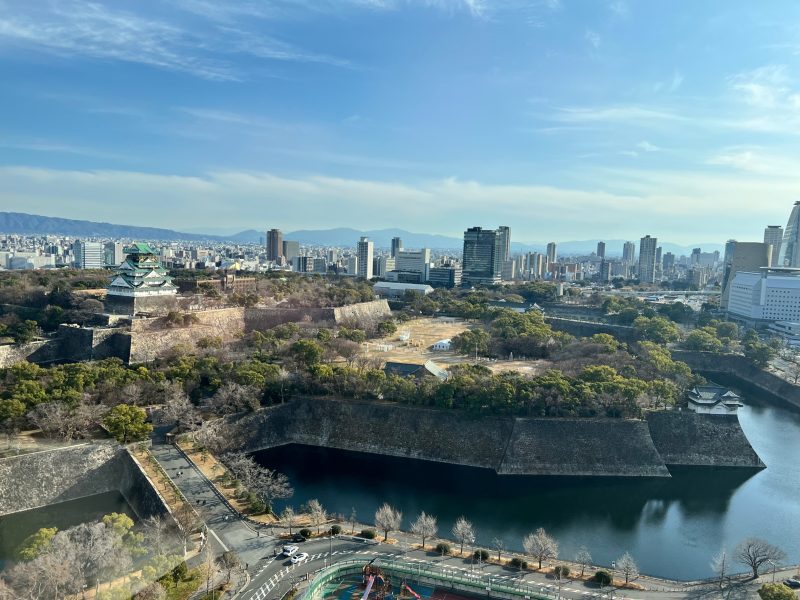 規則的に並ぶ大きな窓からは大阪城🏯と広大な大阪城公園✨