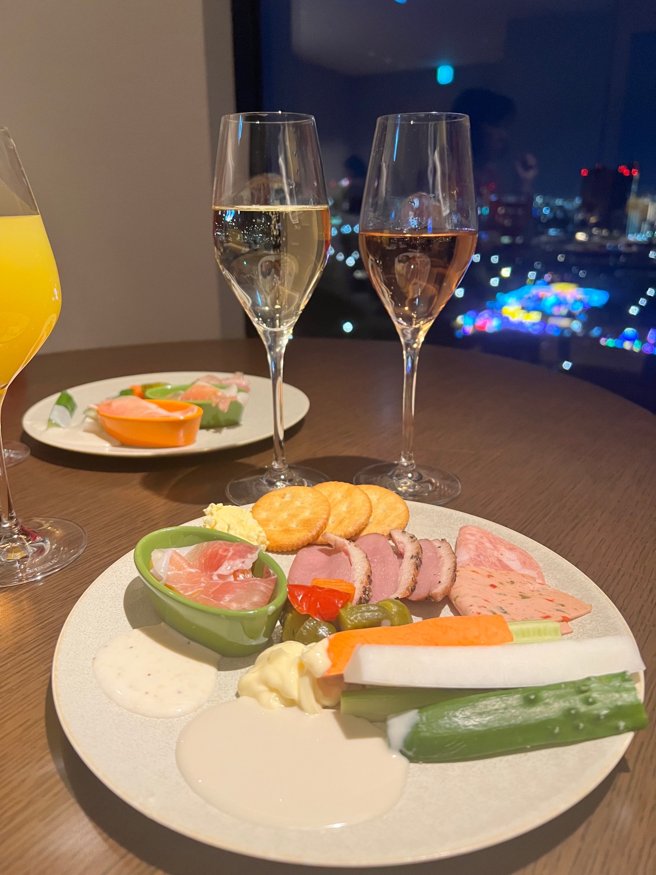 夜景が綺麗な時間になってきたので、シャンパングラスがばえますね😁✨