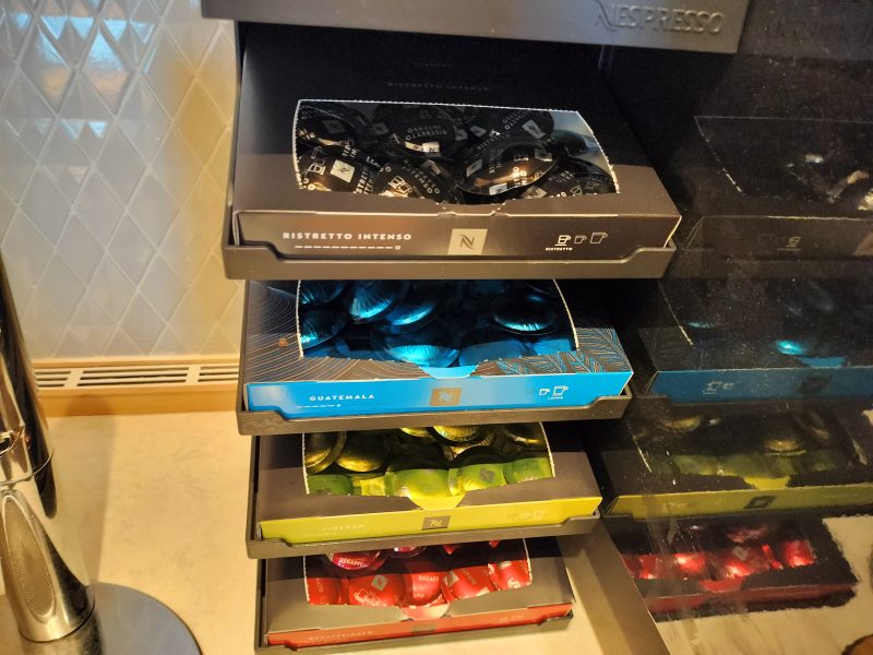 珈琲マシンは自分でカプセルをセットするタイプ