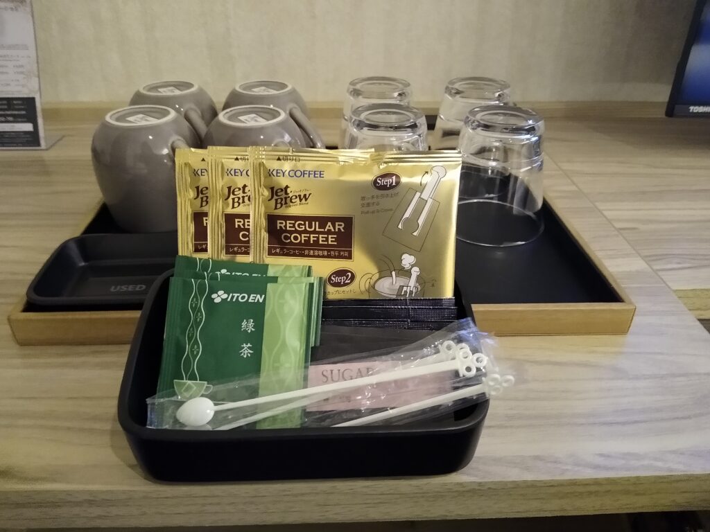 ウエルカムドリンクはホテルの下が商業施設になっていて、そこのお茶屋さんやお酒屋さんでチケットと引き換えに頂けますが、到着時刻が遅かったので明日の朝行ってみようと思います